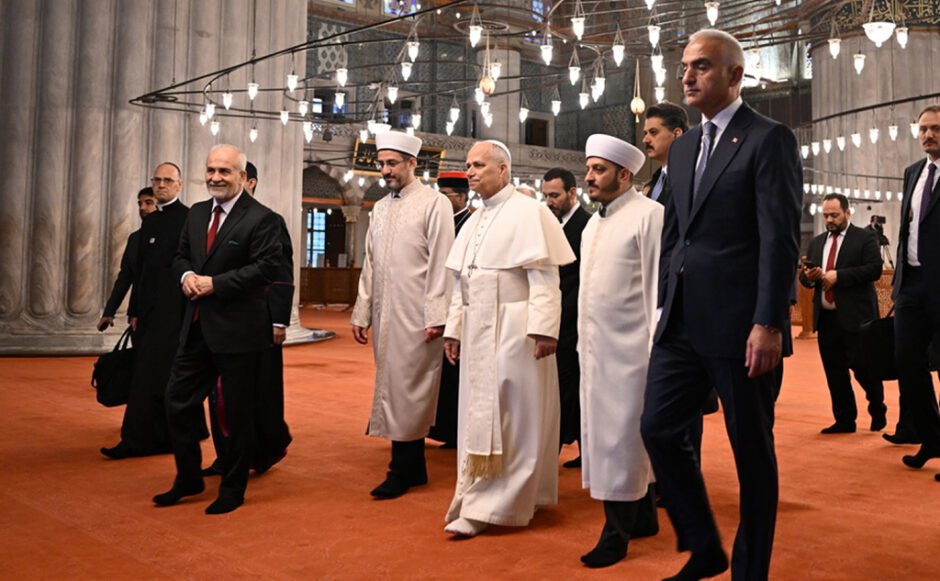 Ο Πάπας Λέων επισκέφθηκε σήμερα το φημισμένο Μπλε Τζαμί της Κωνσταντινούπολης, βγάζοντας τα παπούτσια του σε ένδειξη σεβασμού, αλλά χωρίς να φανεί να προσεύχεται κατά την ...