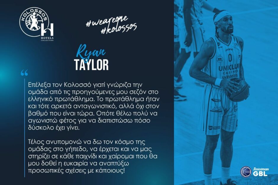 Τις πρώτες του δηλώσεις ως αθλητής του Κολοσσού Ρόδου έκανε ο Ράιαν Τέιλορ, ο οποίος ανέφερε χαρακτηριστικά: “Επέλεξα τον Κολοσσό γιατί γνώριζα την ομάδα από τις ...