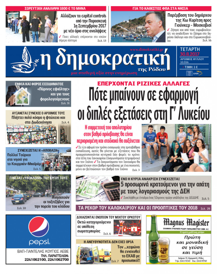 Τα πρωτοσέλιδα της έντυπης έκδοσης