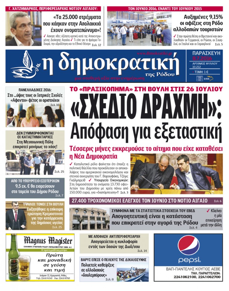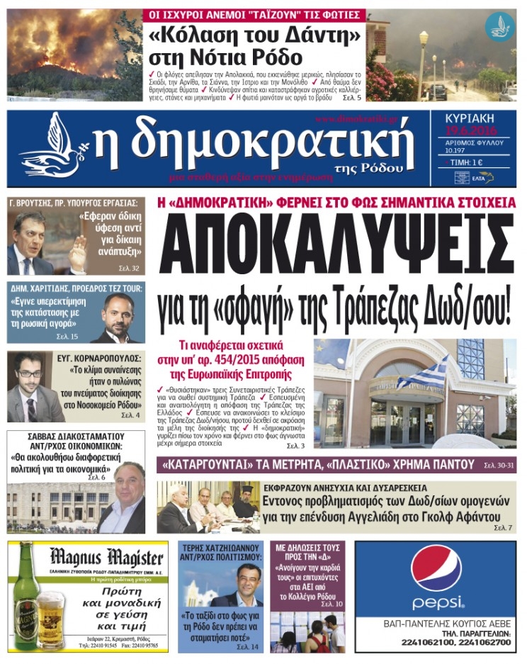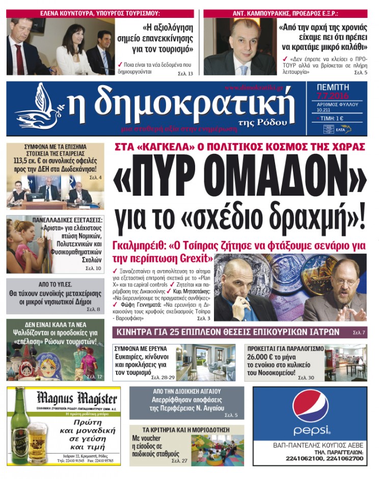 Τα πρωτοσέλιδα της έντυπης έκδοσης