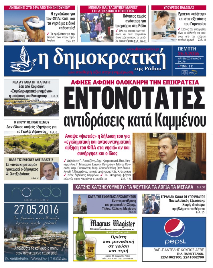 Τα πρωτοσέλιδα της έντυπης έκδοσης