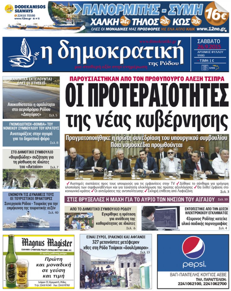 Τα πρωτοσέλιδα της έντυπης έκδοσης